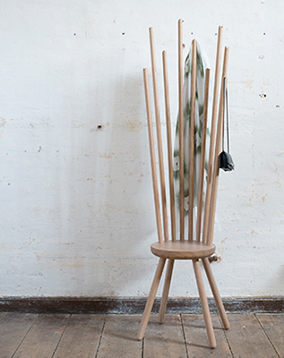 個性的で見る人の興味をそそるランダムに伸びたスポーク。ちょっと腰を掛けていただくスツールとしても使えますが、先端に入れられた凹みにバッグや上着を掛けることでコートラックに早変わり。子どもでも手が届くように高さを調整してあり、家族全員でご使用いただけます。