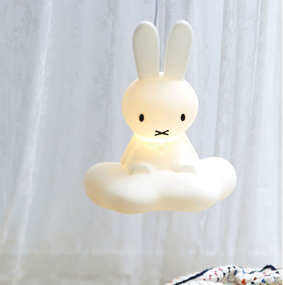 誰もが子どもの頃に読んだことのあるディック・ブルーナの絵本「ミッフィー」。雲にのったミッフィーが優しい光でお部屋を照らします。ブルーナさんの絵のタッチそのままに、角のないやわらかな曲線でつくられています。子供部屋や寝室におすすめのランプです。