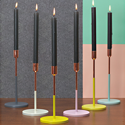 こちらは見る人の目を惹く上品なカラーとコッパーを合わせたキャンドルホルダー。ポップながらも光沢のある金属感やシンプルなフォルムが上品な印象を与えてくれます。こちらは高さ12cmのスモールタイプ。