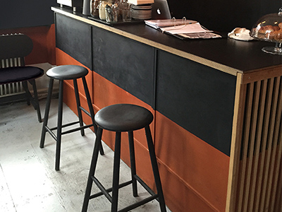 こちらは座面の高さが70cmで、カウンターなどに使えるラージサイズのハイスツールです。空間の雰囲気を引き締めてくれる、シックなモノトーンのブラック塗装。足置きにもなる貫は床から15cm、20cm、26cm、32cmと高さを変えて組まれており、体形が異なる人が使ってもどこか落ち着く体勢が見つかります。